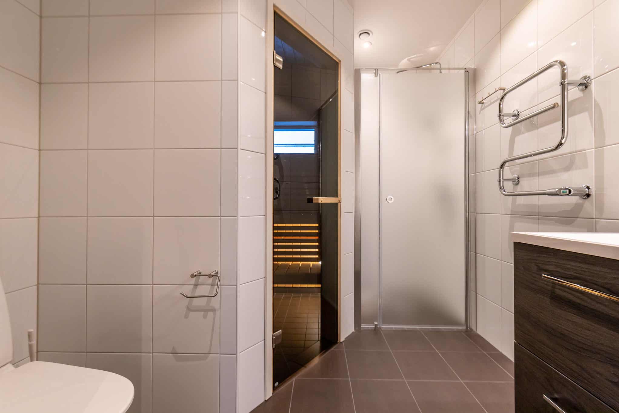 Badkamers:Badkamer 1: met douche/WC/sauna. Badkamer 2: met douche/WC/handdoekdroger.
