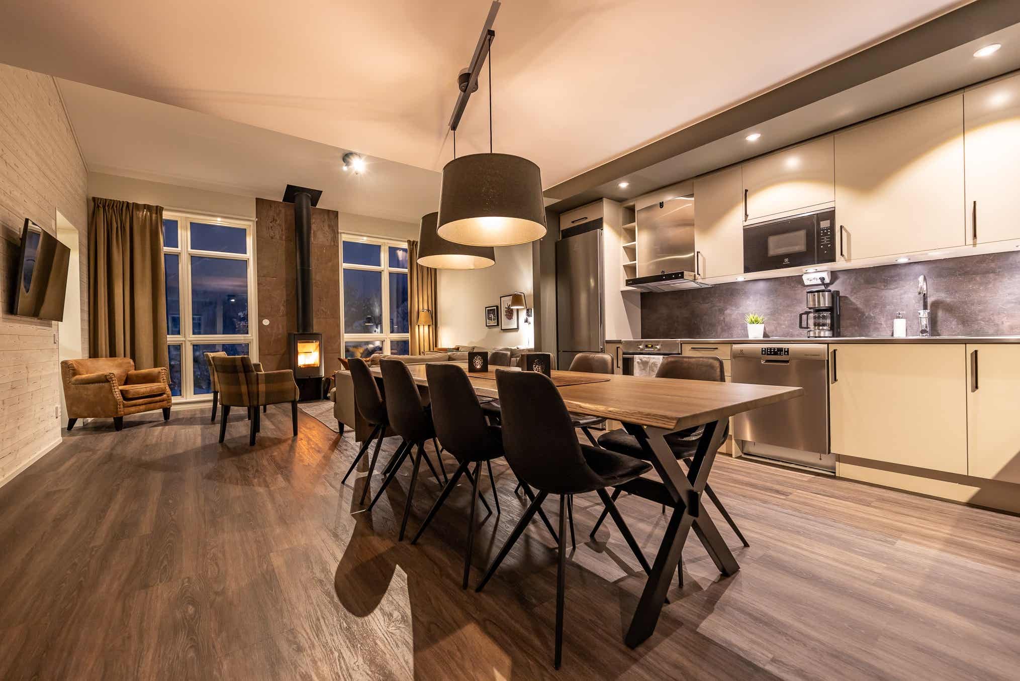 De keuken is voorzien van oven, elektrische kookplaat, koelkast, vriezer, vaatwasser, magnetron.