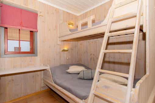 Slaapkamers:Slaapkamer 1= 1 stapelbed. Slaapkamer 2= 1 stapelbed met 120 cm breed onderbed. Slaapkamer 3= 1 stapelbed met 120 cm breed onderbed.