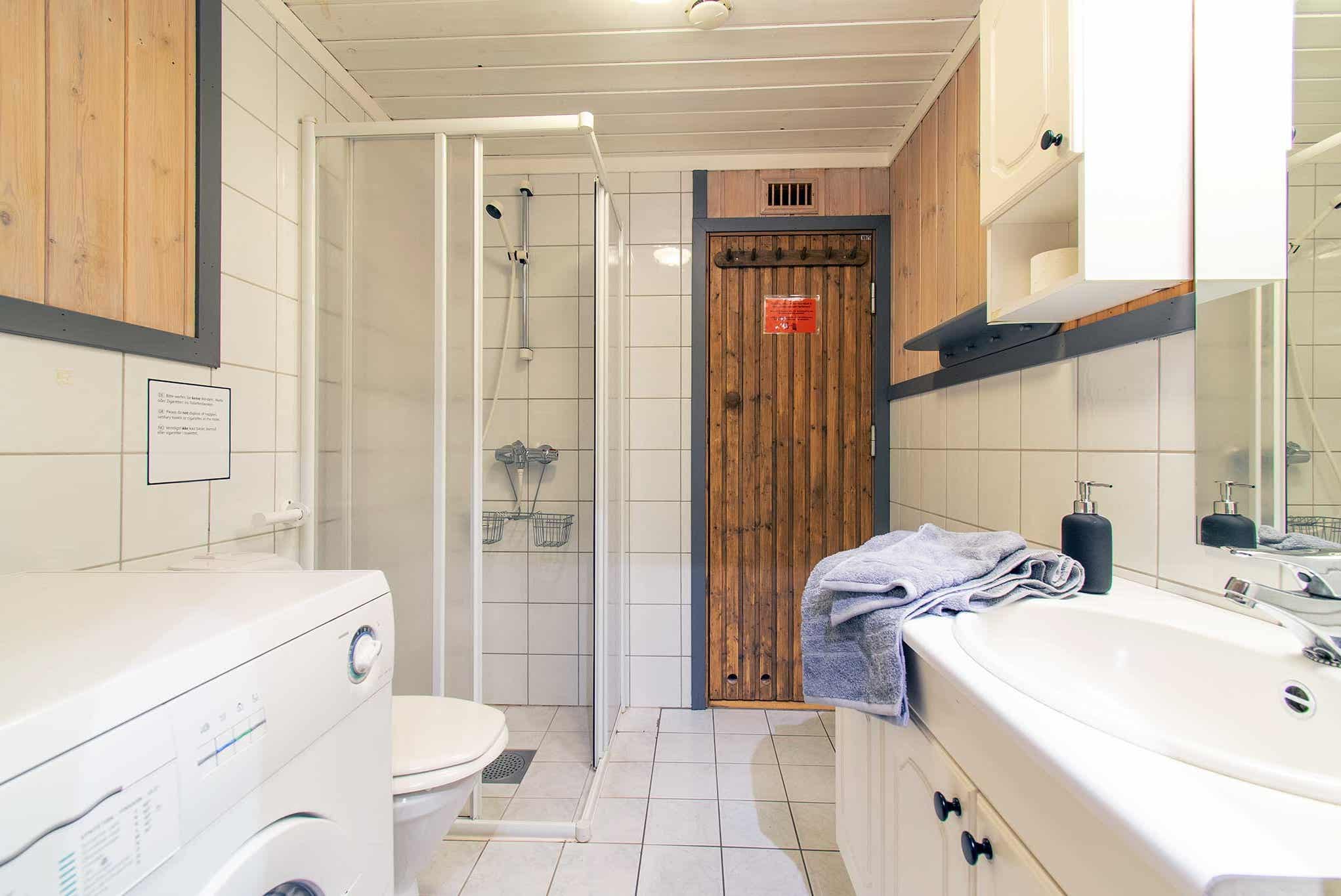 Badkamers:Badkamer 1: met douche, toilet en sauna.