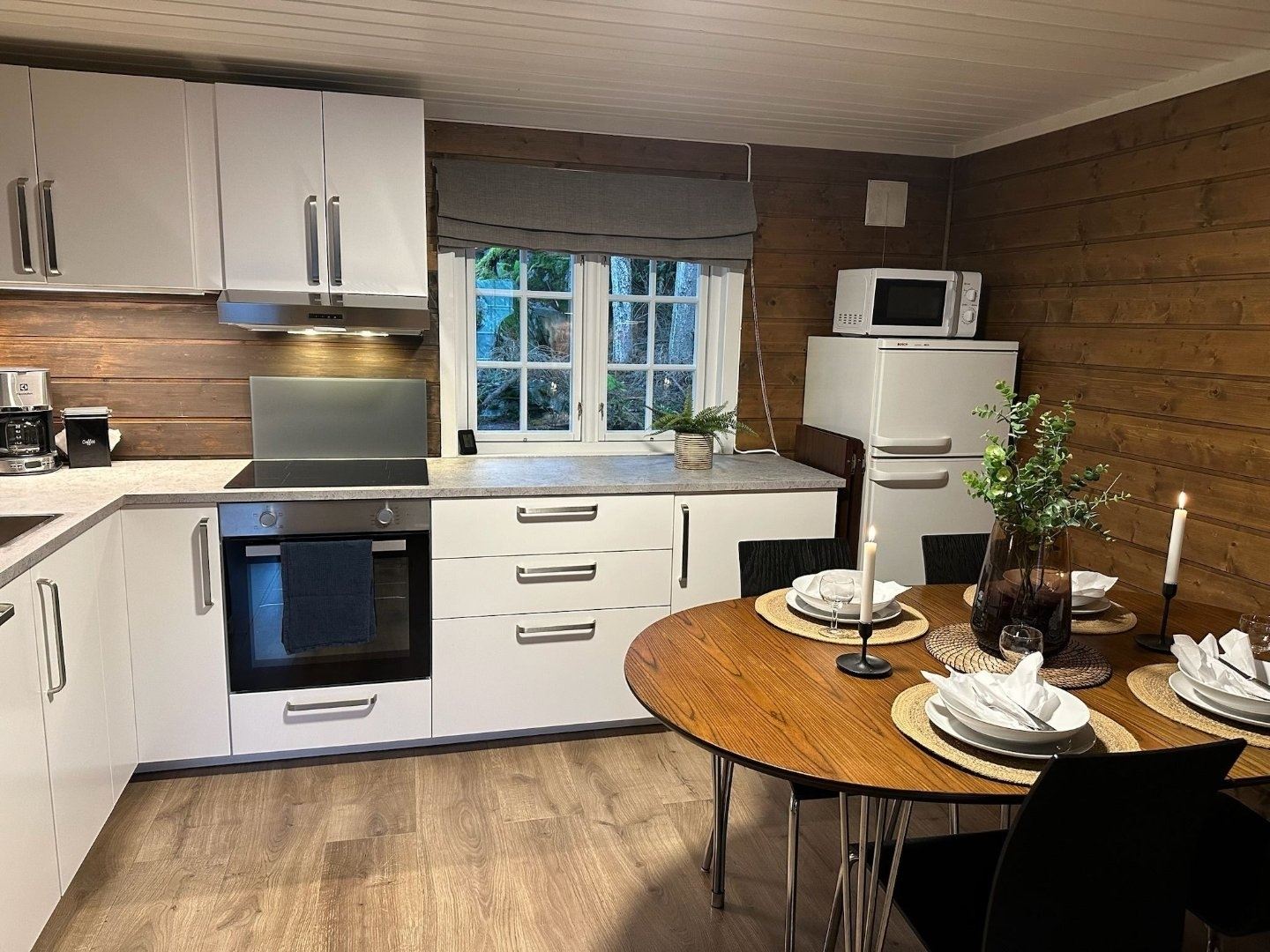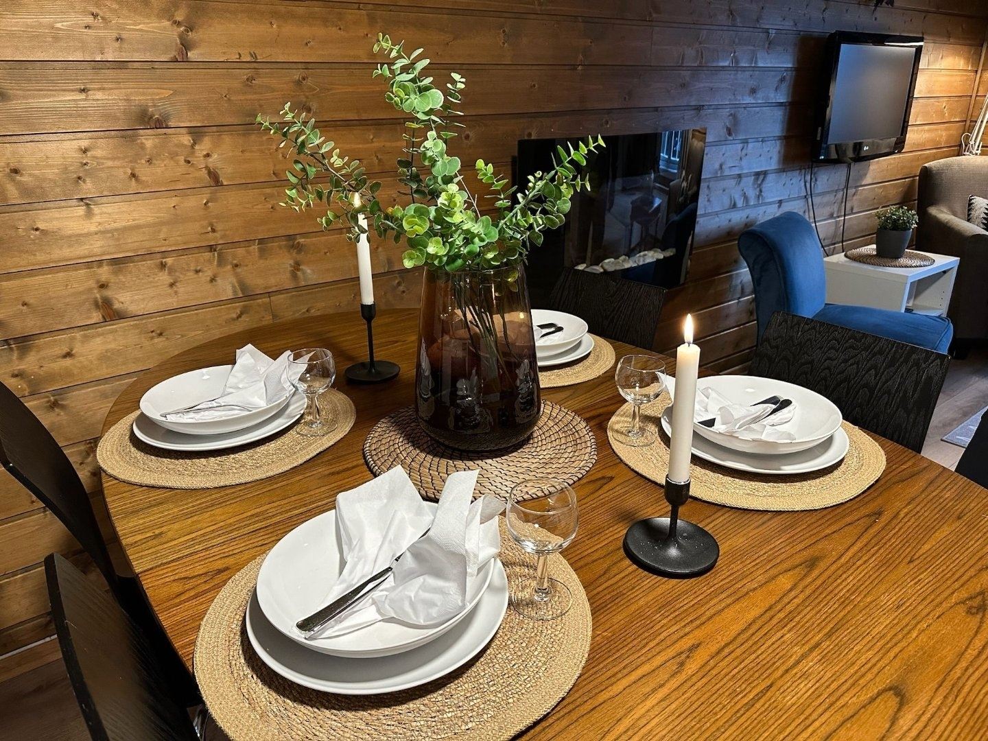 Sørlia 12D biedt alles wat u nodig heeft voor een ontspannen verblijf. In de keuken vindt u een fornuis, koelkast, vriezer, magnetron, vaatwasser en koffiezetapparaat. In het eetgedeelte is plaats voor 7-8 personen, ideaal om gezellig samen te eten. Na een dag vol activiteiten kunt u heerlijk ontspannen in de woonkamer, voorzien van een bank, televisie en een elektrische open haard.