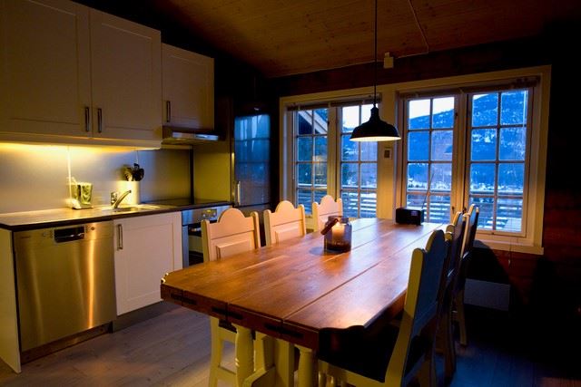 Sørli 13A biedt alles wat u nodig heeft voor een ontspannen verblijf. In de keuken vindt u een fornuis, koelkast, vriezer, magnetron, vaatwasser en koffiezetapparaat.