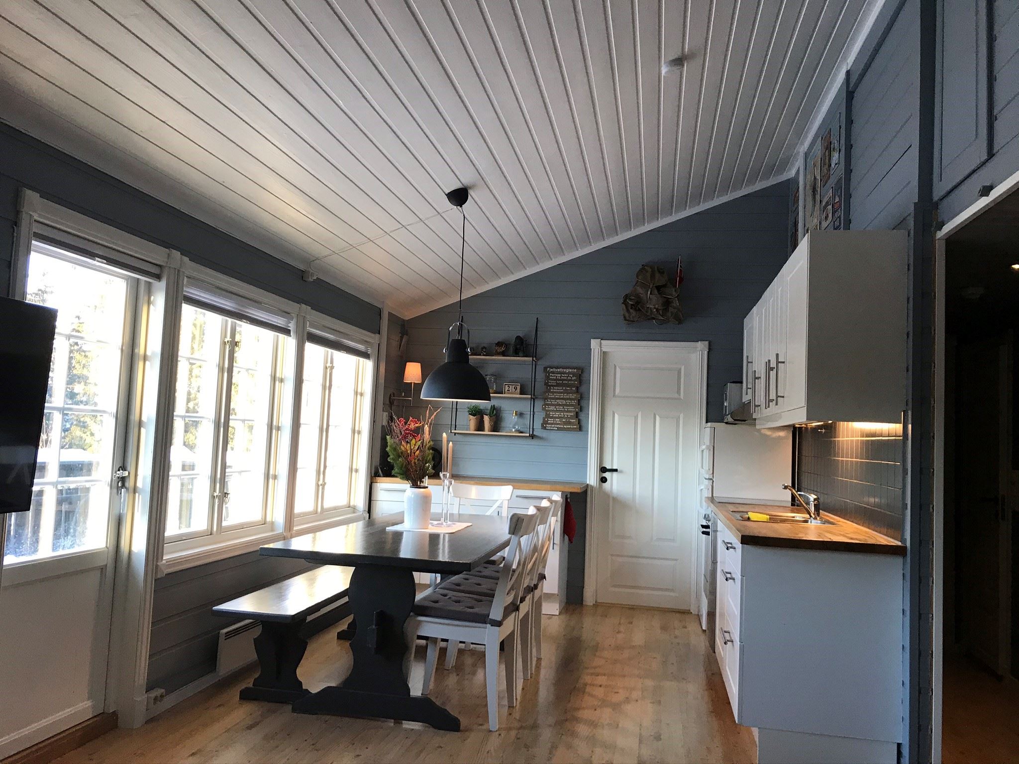 Sørlia 19f biedt alles wat u nodig heeft voor een ontspannen verblijf. In de keuken vindt u een fornuis, koelkast, vriezer, magnetron, vaatwasser en koffiezetapparaat.