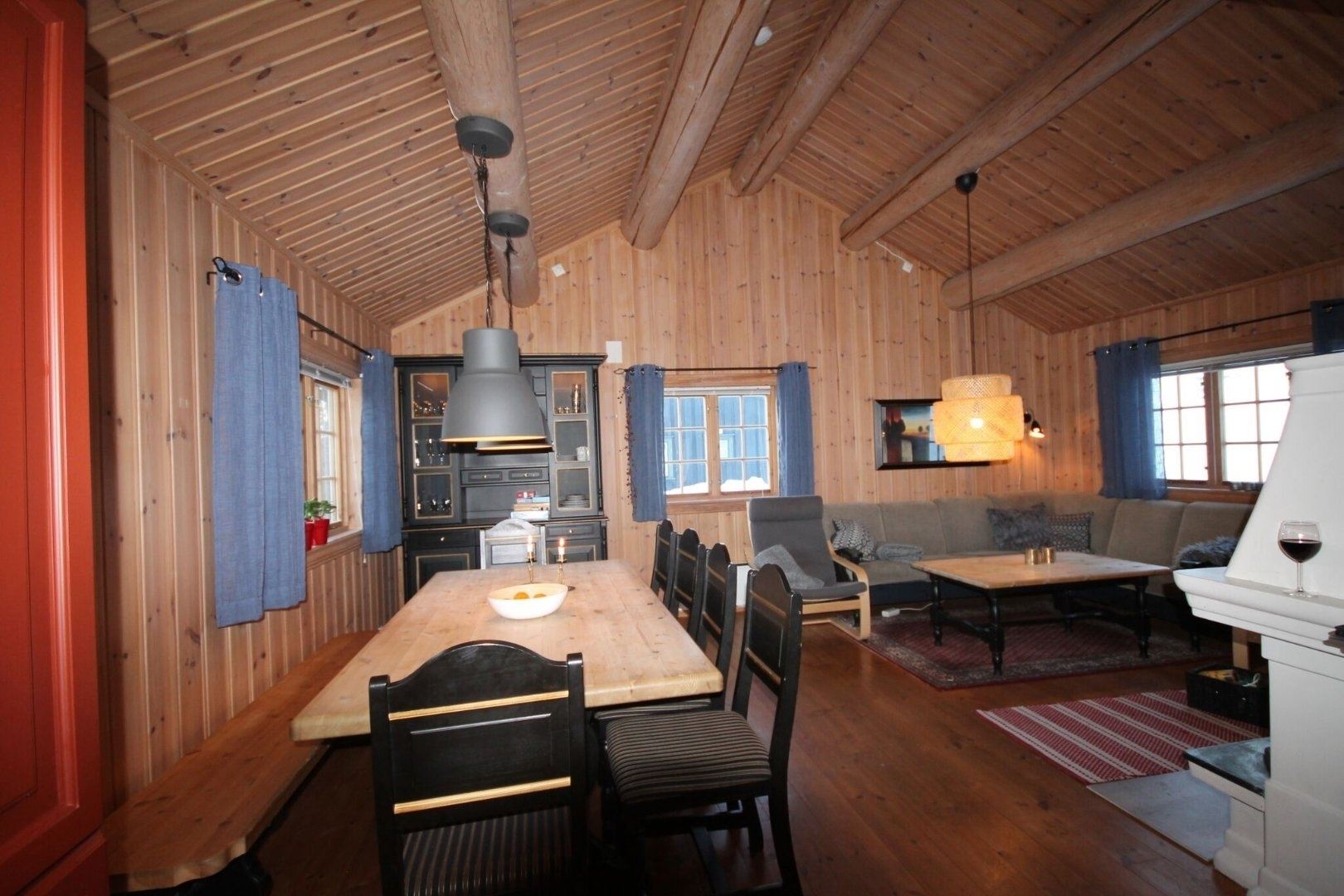 Sørlia 4E biedt alles wat u nodig heeft voor een ontspannen verblijf. De keuken is voorzien van een kookplaat, koelkast, vriezer, vaatwasser en koffiezetapparaat. Het eetgedeelte biedt plaats aan maximaal 8 personen, ideaal om samen van een maaltijd te genieten. Na een dag vol activiteiten kunt u heerlijk ontspannen in de woonkamer, ingericht met een bank, televisie en een gezellige open haard; ideaal voor ontspannende avonden bij het vuur.