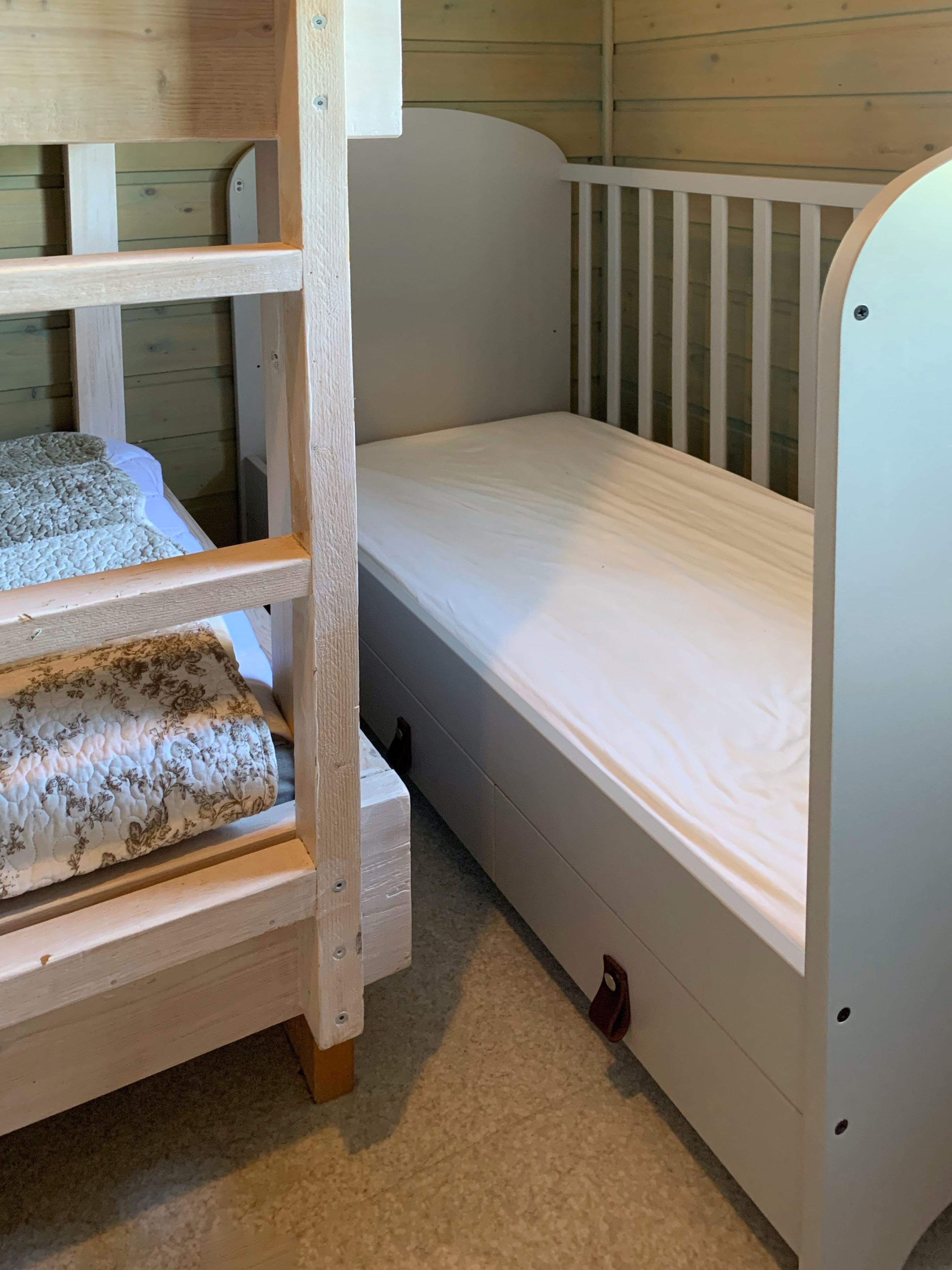 Slaapkamer 3: drievoudige stapelbed (75 cm x 200 cm) + COT (2-5 jaar)