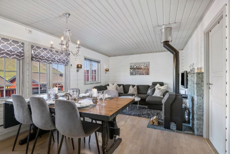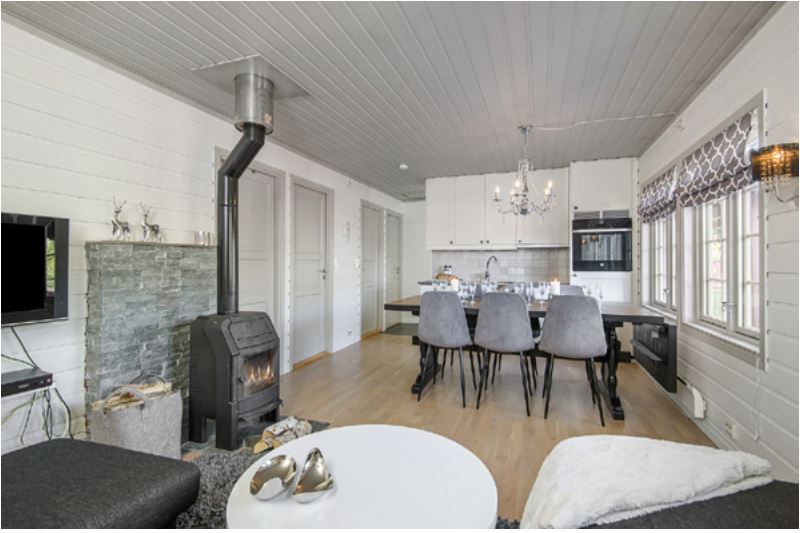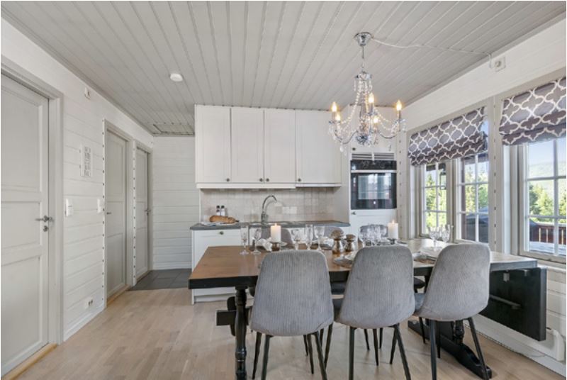 Sørlia 7D biedt alles wat u nodig heeft voor een ontspannen verblijf. De keuken is uitgerust met een fornuis, koelkast, vaatwasser en koffiezetapparaat. De eethoek zitting tot 8 personen, waardoor het perfect is voor gedeelde maaltijden. Na een dag vol activiteiten, kunt u ontspannen in de woonkamer, met een comfortabele bank, tv en een warme open haard – perfect voor gezellige avonden bij het vuur.