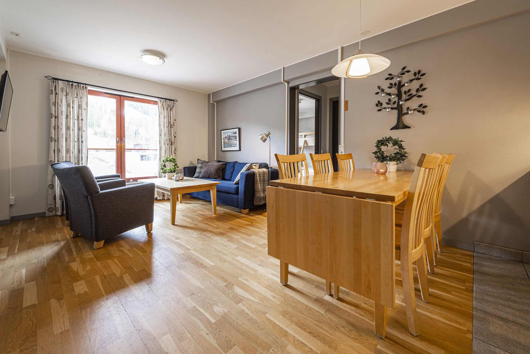 Sportvåning bevindt zich in Tandådalen. Appartement, 8 bedden, 60 m², woonkamer met gecombineerde keuken, 3 slaapkamers, 2 douches, 2 toiletten.