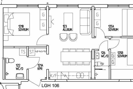 Sportvåning bevindt zich in Tandådalen. Appartement, 8 bedden, 60 m², woonkamer met gecombineerde keuken, 3 slaapkamers, 2 douches, 2 toiletten.