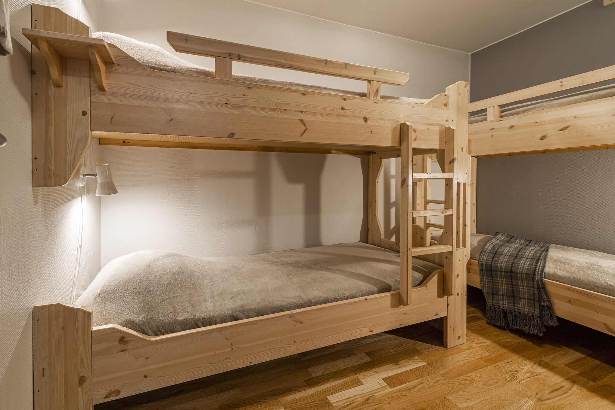 Slaapkamers:Slaapkamer-1 = 1 tweepersoonsbed. Slaapkamer-2 = 1 stapelbed met 120 cm breed onderbed. Slaapkamer-3 = 2 stapelbedden.