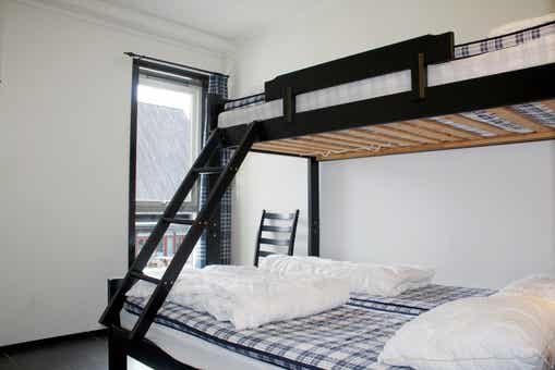 Slaapkamers:Slaapkamer 1: 1 tweepersoonsbed. Slaapkamer 2: 1 stapelbed met 150 cm breed onderbed. Slaapkamer 3: 2 stapelbedden.