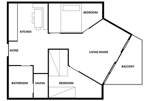 Stavtaket bevindt zich in Hemsedal Skisenter. Appartement op verdieping 2, 6 bedden, 54 m², woonkamer met gecombineerde keuken, 2 slaapkamers, 1 douche, 1 toilet, 1 sauna.