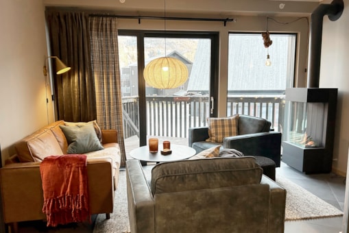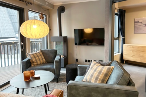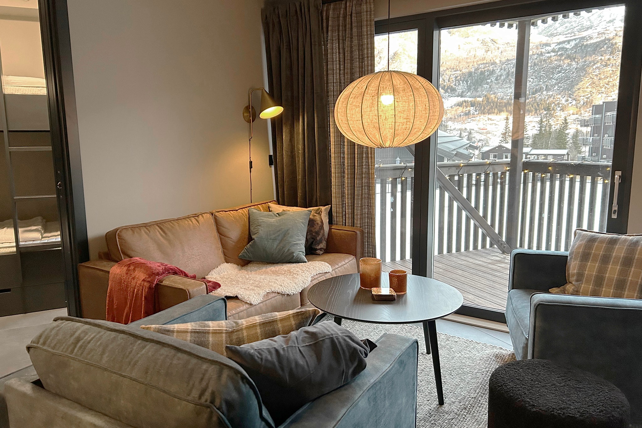 Appartementen op loopafstand van ski-liften, pistes, langlauf skiën, supermarkt, skiverhuur, restaurants, bars en nachtleven in Hemsedal Skisenter. Alle appartementen hebben sauna en gashaard.