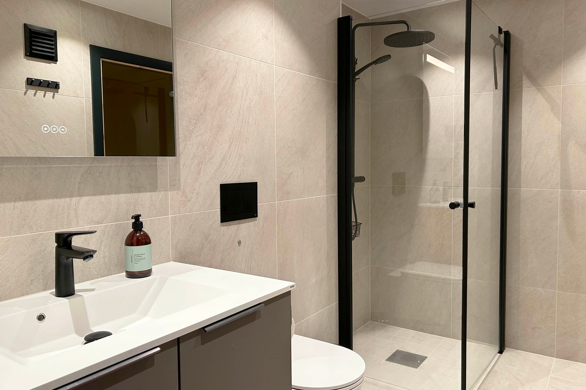 Badkamers:Badkamer 1: douche, toilet, sauna.