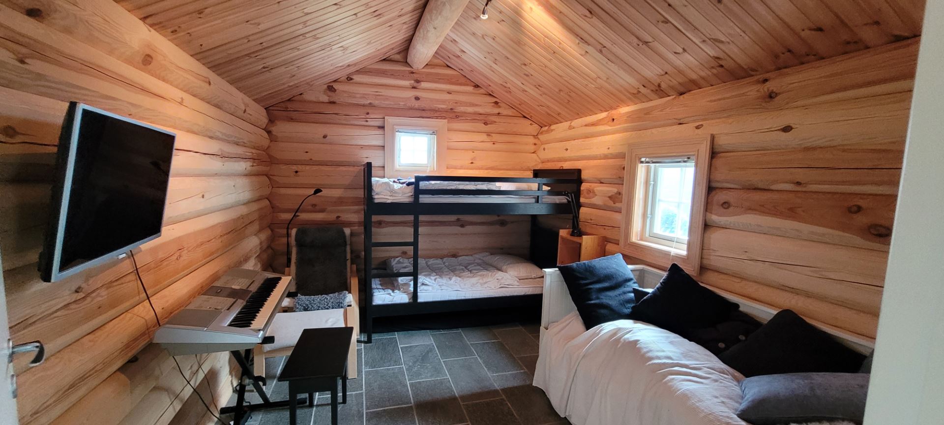 Slaapkamer 3: tweepersoonsbed (160cm x 200cm) + stapelbed (90cm x 200cm)