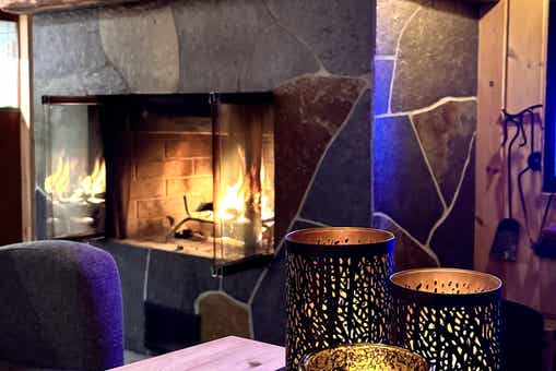 Bij een knisperend kampvuur geniet je van warme dranken en snacks, terwijl je wacht op het betoverende noorderlicht. Een onvergetelijke ervaring onder de sterrenhemel van Trysil.