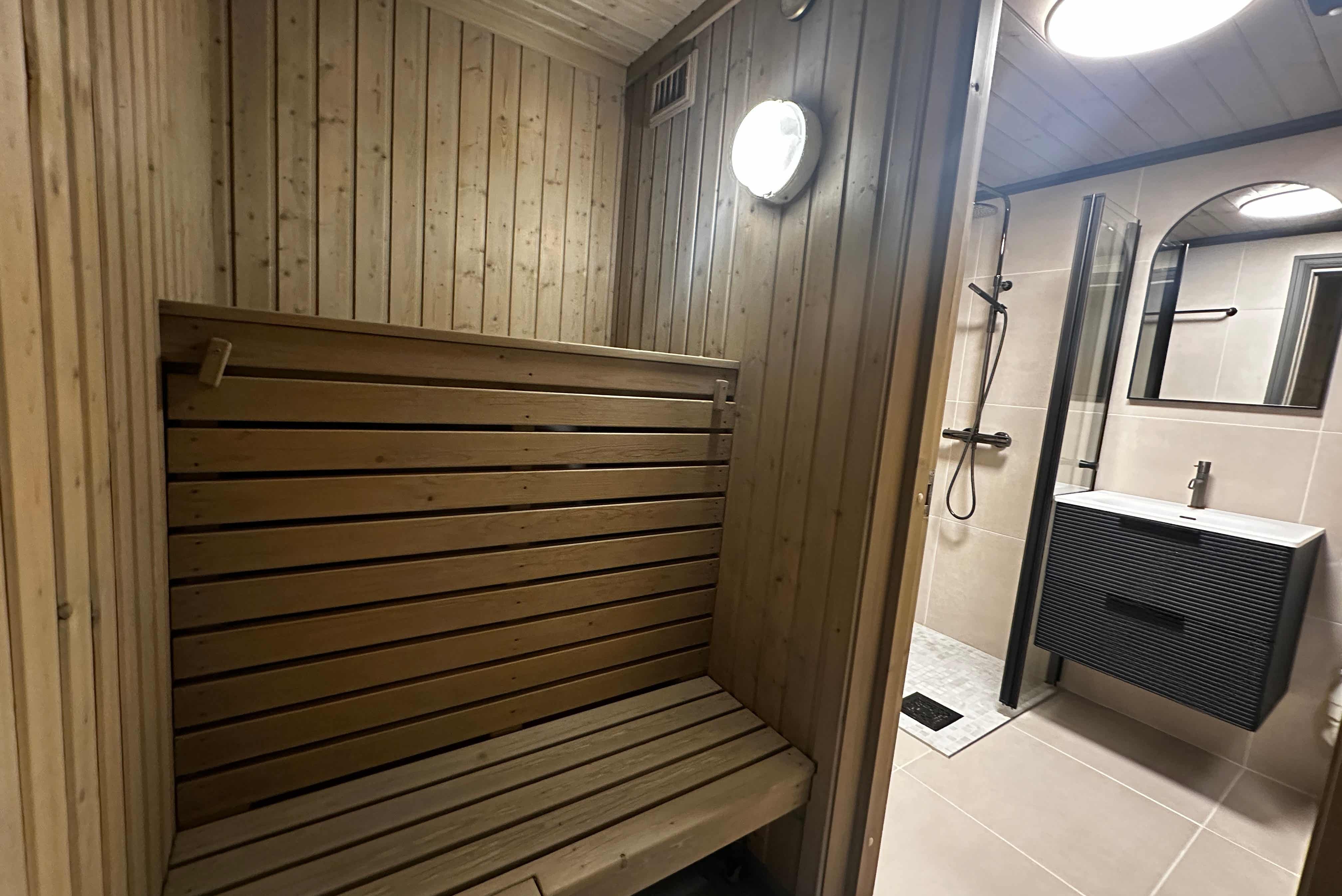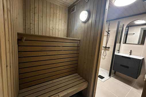 Badkamers:Badkamer 1: met douche en toilet. Badkamer 2: met douche, toilet en sauna.