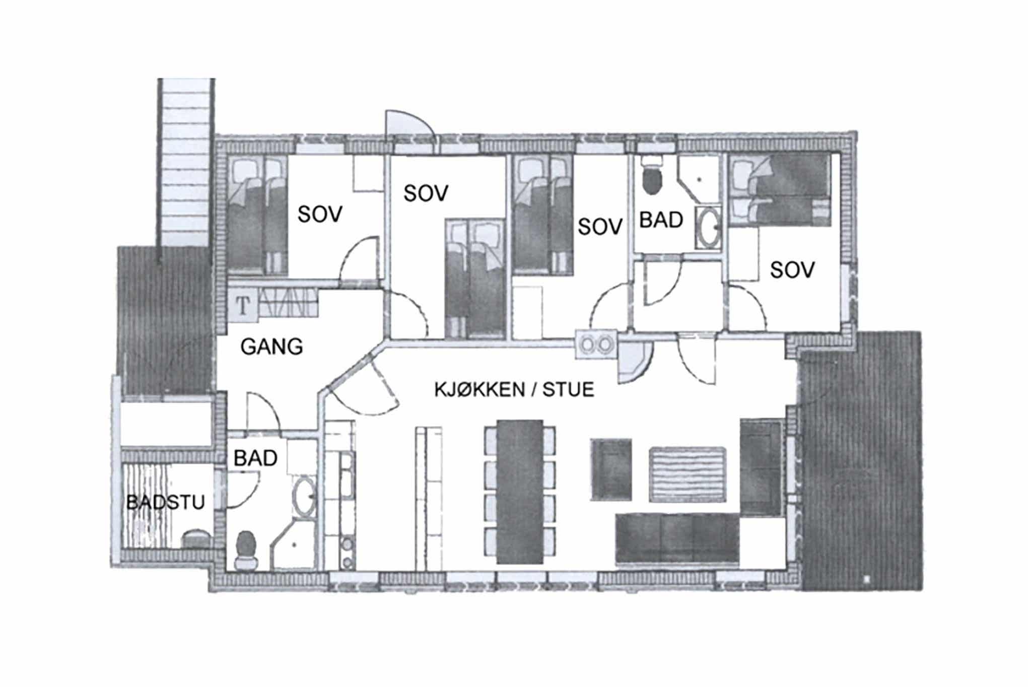 Slaapkamers:Slaapkamer 1= 1 tweepersoonsbed. Slaapkamer 2= 1 stapelbed met 150 cm breed onderbed. Slaapkamer 3= 1 stapelbed met 120 cm breed onderbed. Slaapkamer 4= 1 stapelbed met 120 cm breed onderbed.