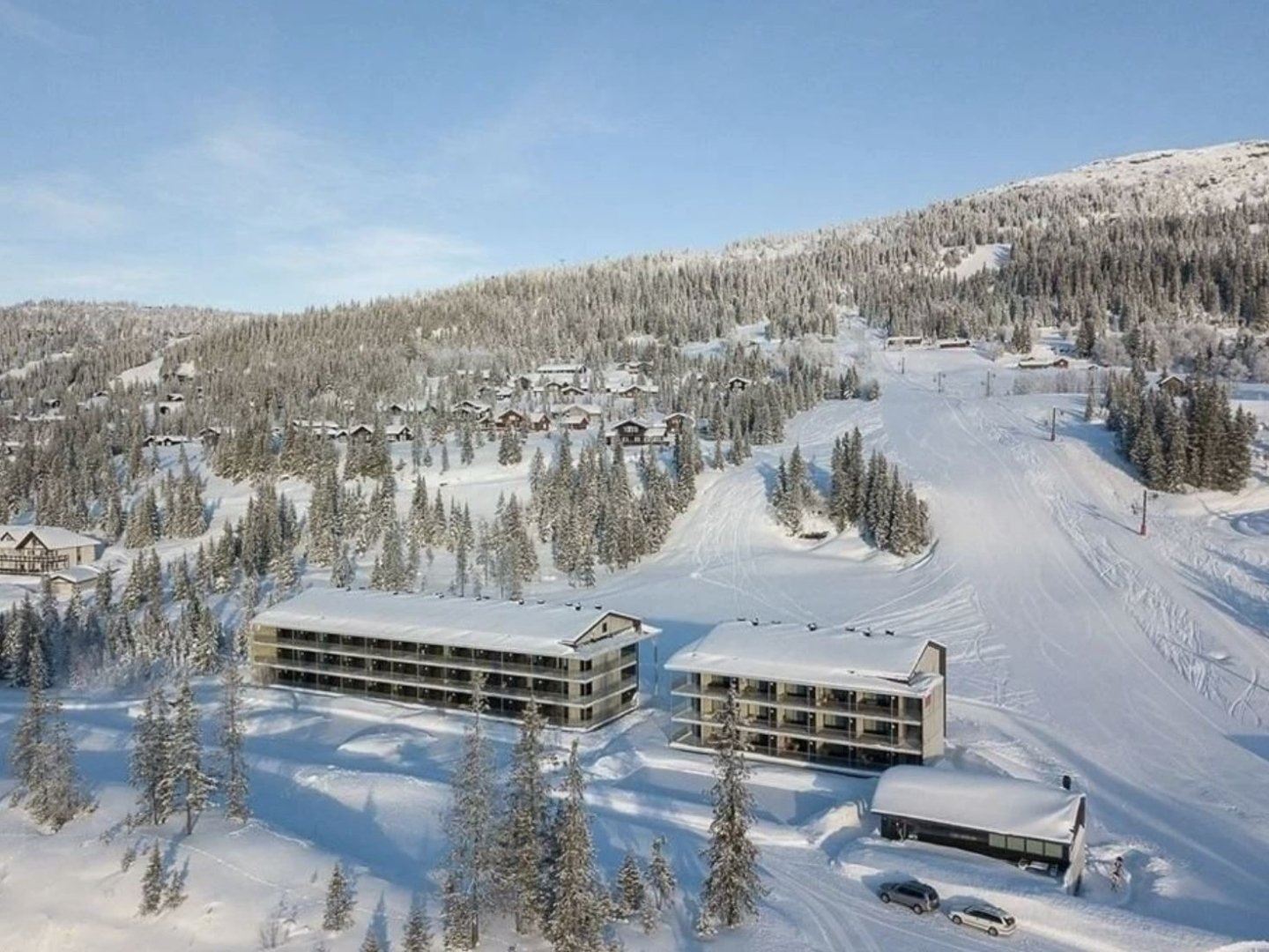 Geen druk centrum, maar wel knusse cabins, haardvuren en ski-in/ski-out lodges met uitzicht. Gezinnen vinden overzichtelijke kinderzones en een funslope, terwijl de rustige sfeer zorgt voor ontspannen vakantiedagen in de sneeuw.