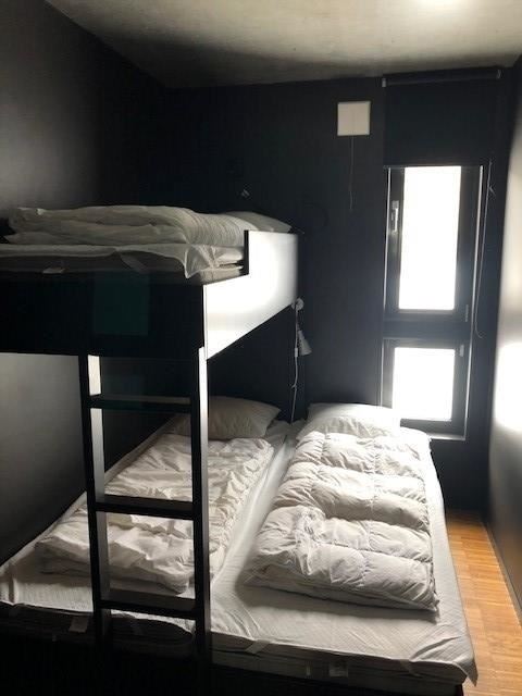 Slaapkamer 1: Familiestapelbed (150cm/75cm x 200cm) + stapelbed (80cm x 200cm)
