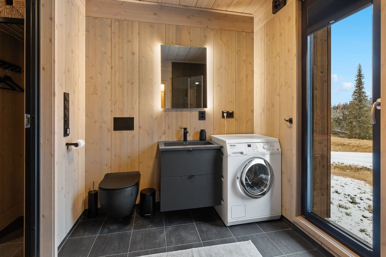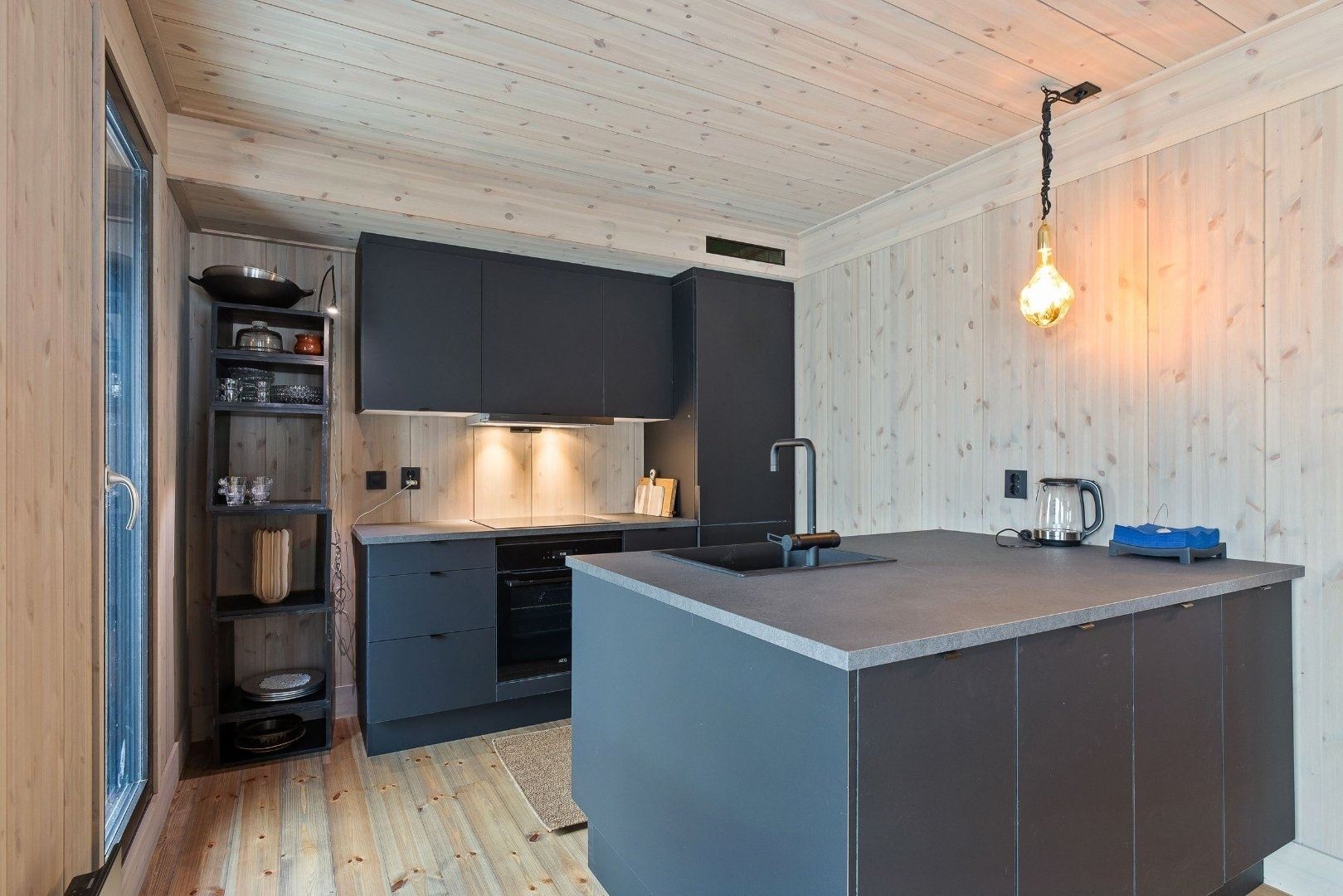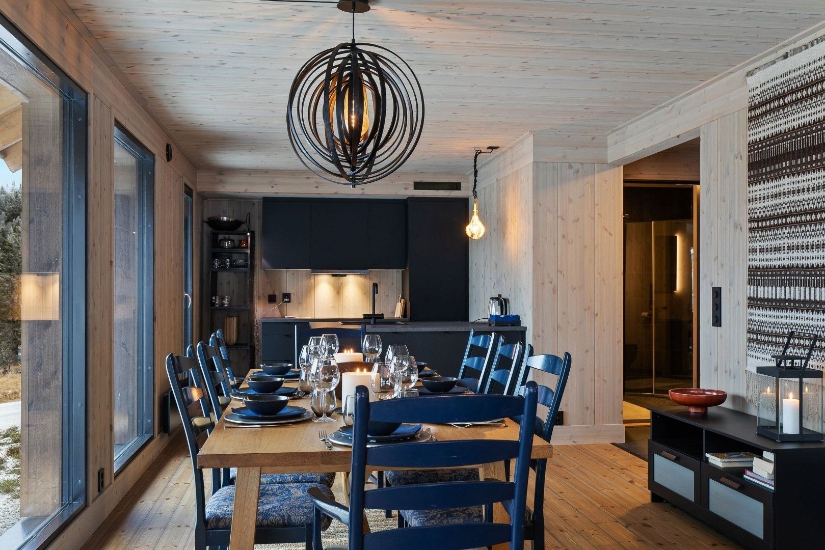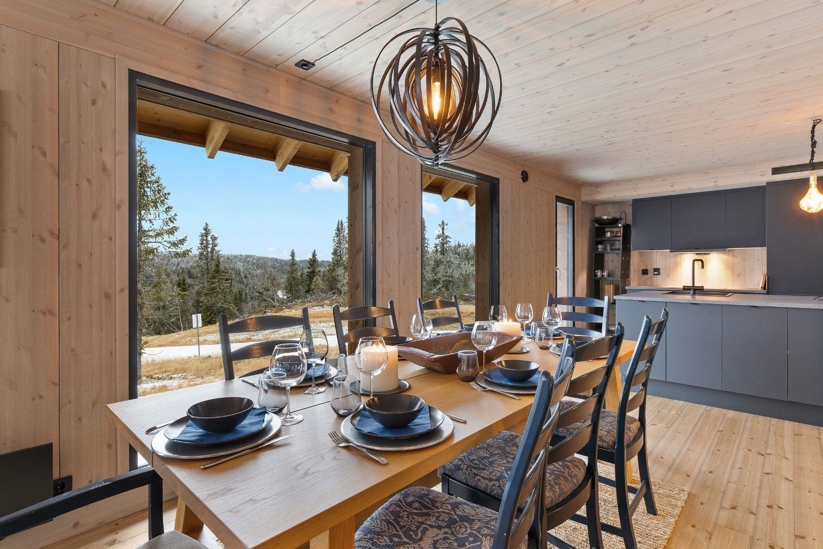 Svartskardvegen 186 biedt alles wat u nodig heeft voor een ontspannen verblijf. De keuken is voorzien van een kookplaat, koelkast, vriezer, vaatwasser en koffiezetapparaat.