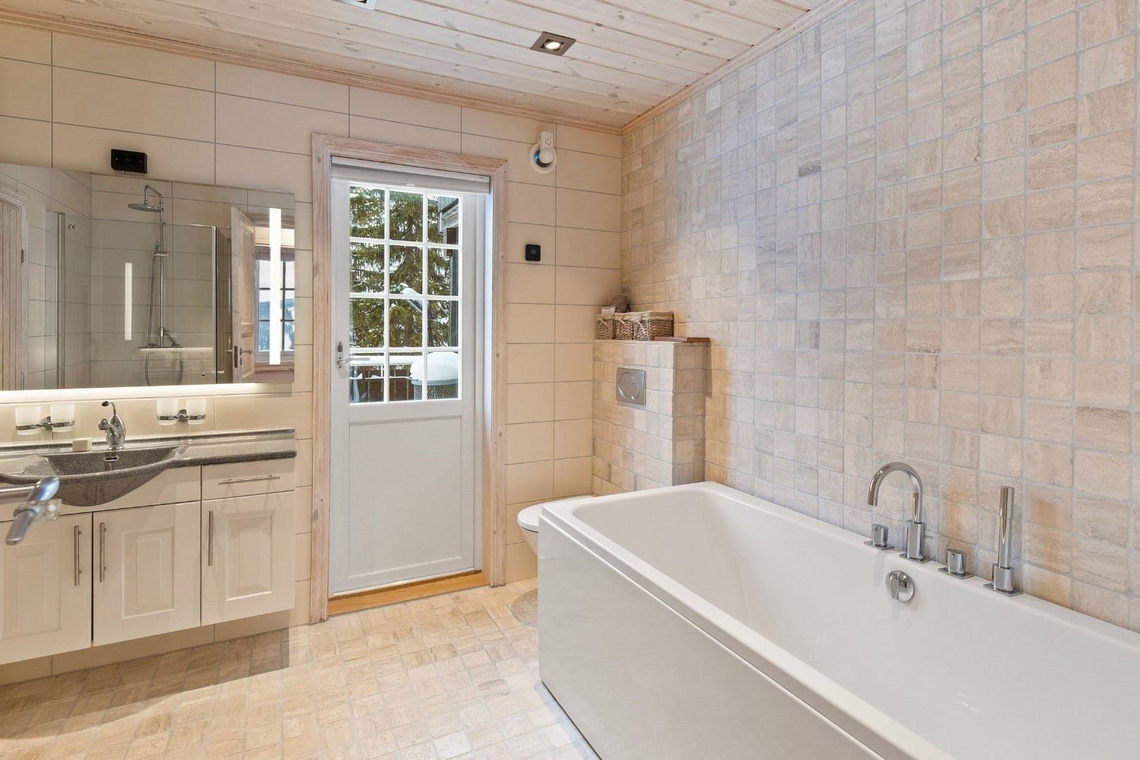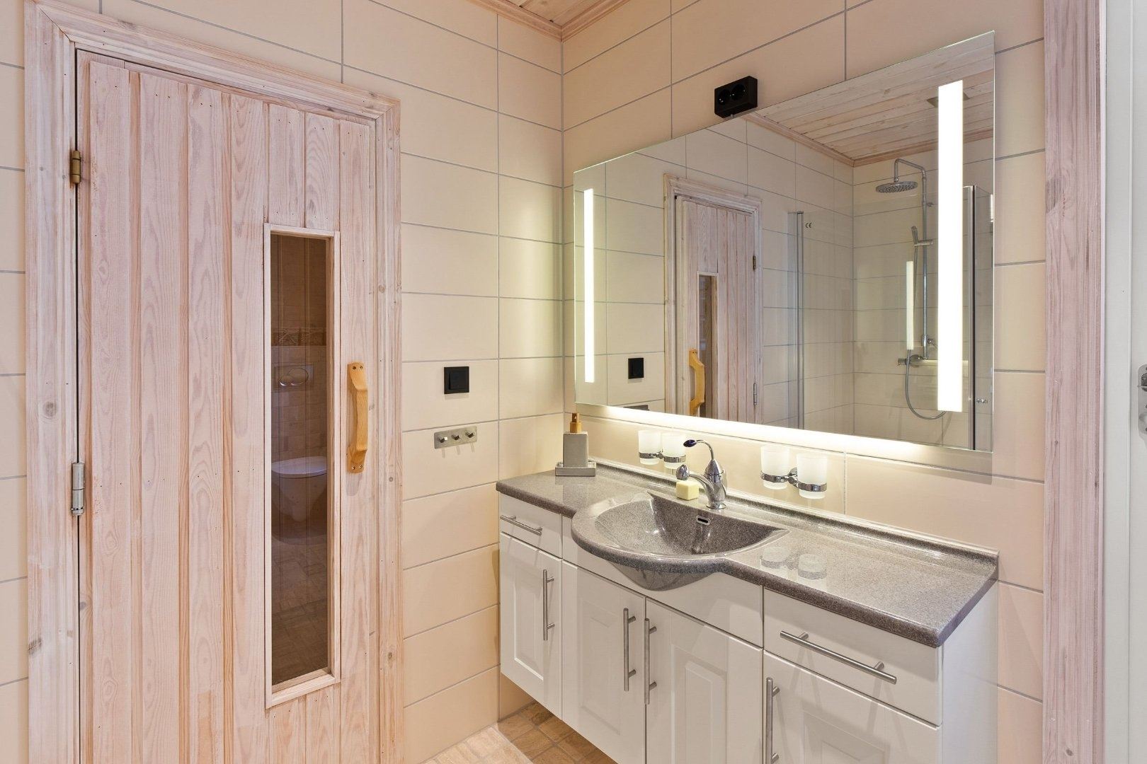 Badkamer 1: Douche, ligbad, toilet en sauna