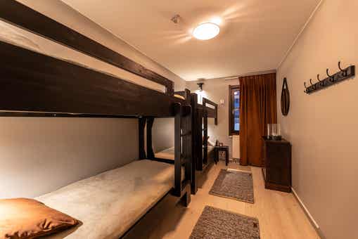 Appartement op entreeverdieping, 8 bedden, 90 m², woonkamer met gecombineerde keuken, 3 slaapkamers, 1 douche, 2 WC, sauna.