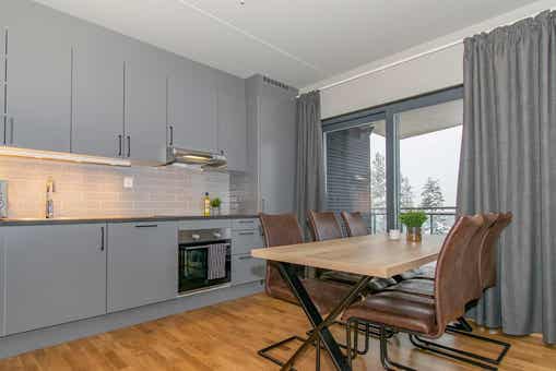 De unit heeft een magnetron, vaatwasser, koelkast, vriezer.
