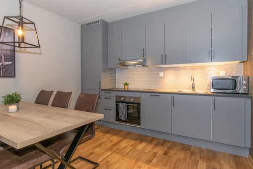 De unit heeft een magnetron, vaatwasser, koelkast, vriezer.