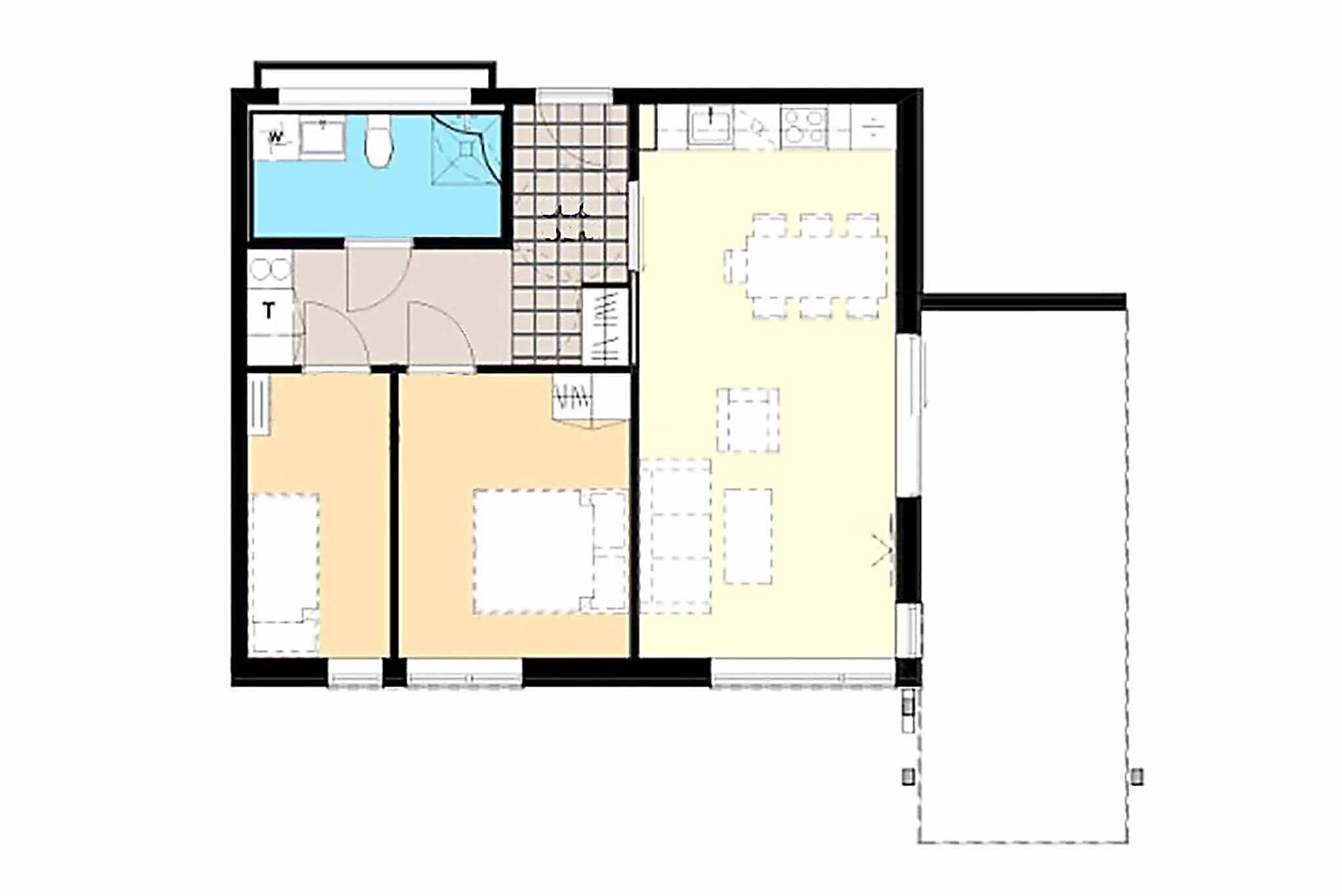 Appartement op de eerste verdieping, 4+1 bedden, 60 m², woonkamer met gecombineerde keuken, 2 slaapkamers, 1 douche, 1 toilet.