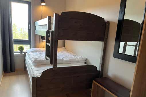 Slaapkamers:Slaapkamer 1= 1 tweepersoonsbed 160 cm breed. Slaapkamer 2= 1 stapelbed met 120 cm breed onderbed en 80 cm breed bovenbed.