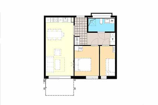 Slaapkamers:Slaapkamer 1= 1 tweepersoonsbed 160 cm breed. Slaapkamer 2= 1 stapelbed met 120 cm breed onderbed en 80 cm breed bovenbed.