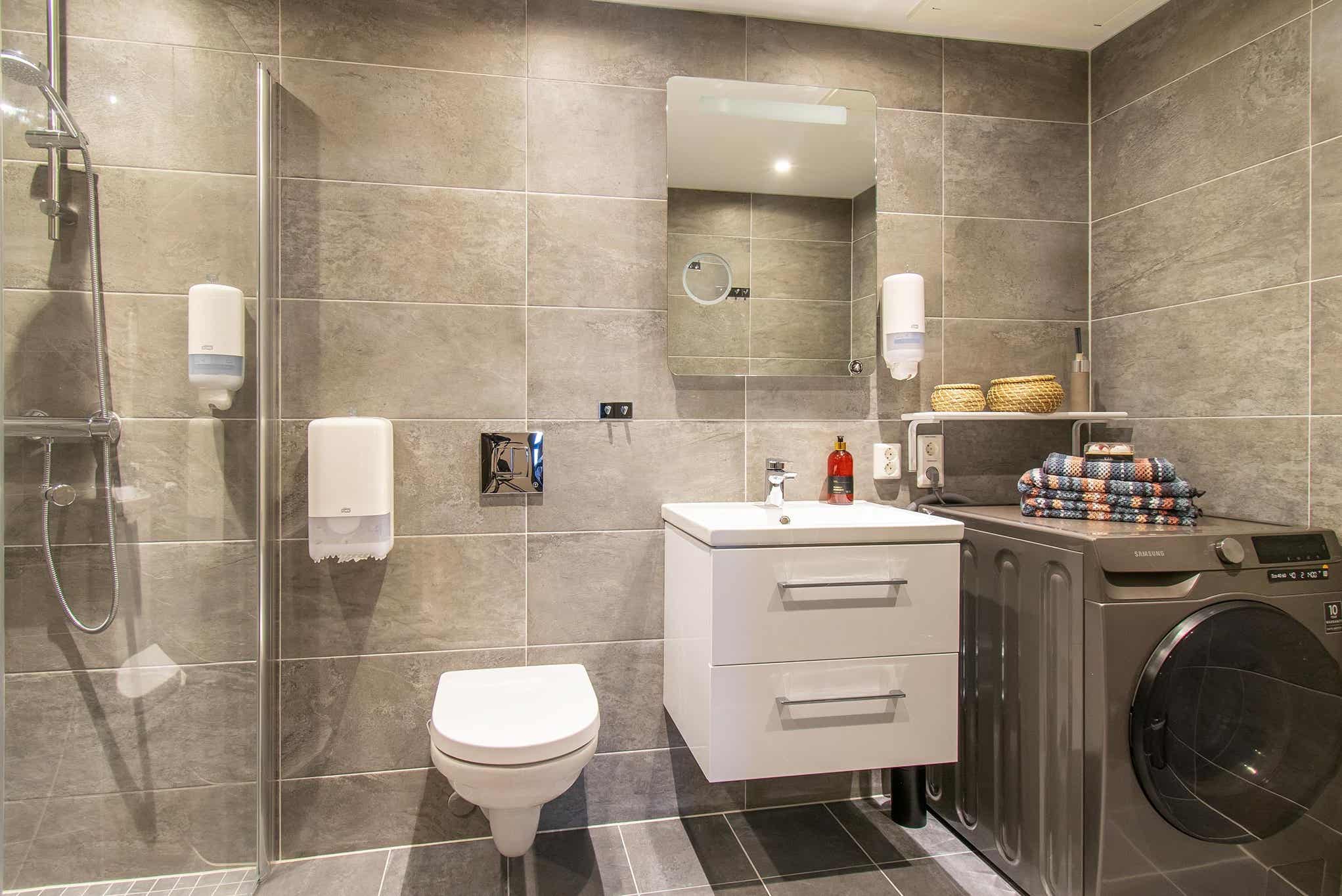 Badkamers:Badkamer 1: met douche en toilet.