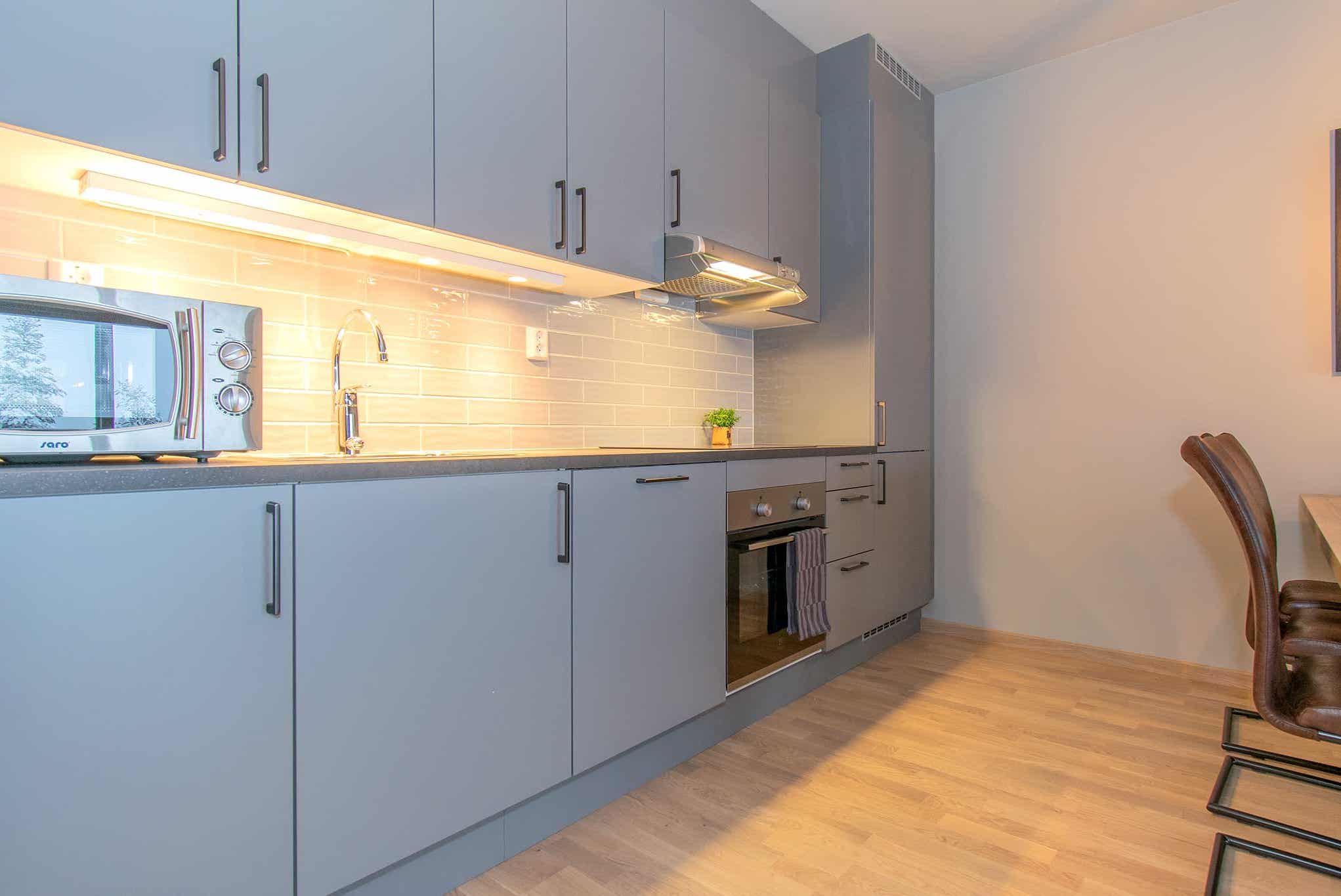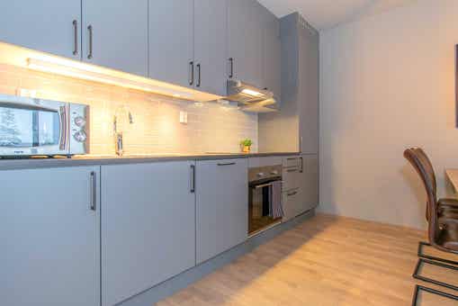 De unit heeft een magnetron, vaatwasser, koelkast, vriezer.