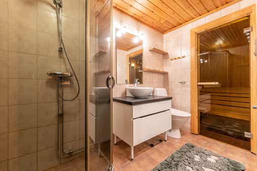 Badkamers:Badkamer 1: met douche/WC/sauna.
