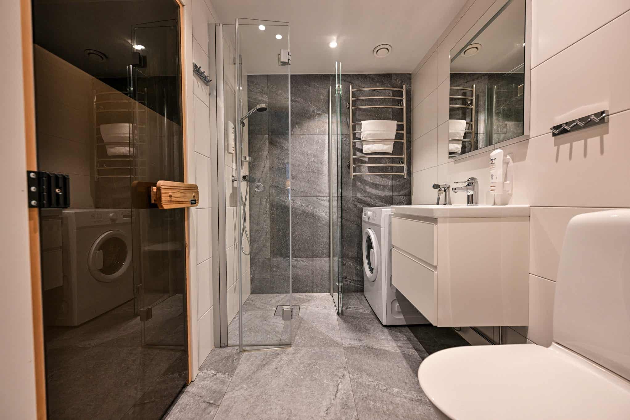Badkamers:Badkamer 1: met douche/WC/sauna.