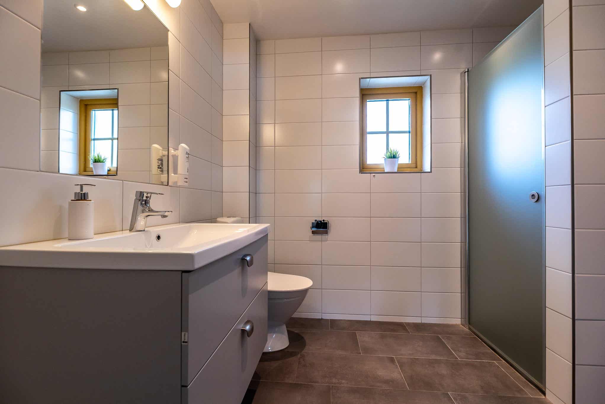 Badkamers:Badkamer 1: met douche/WC/sauna. Badkamer 2: met douche/WC. Badkamer 3: met toilet.