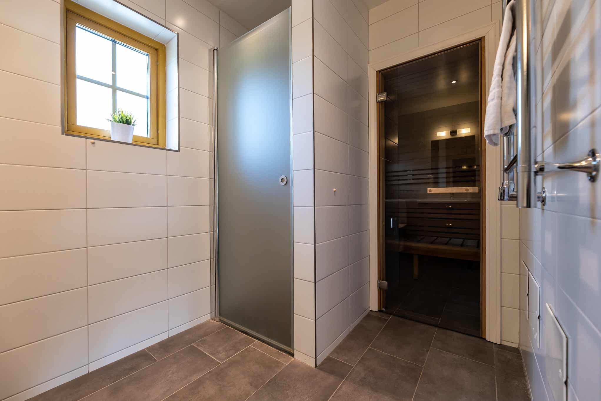 Badkamers:Badkamer 1: met douche/WC/sauna. Badkamer 2: met douche/WC. Badkamer 3: met toilet.