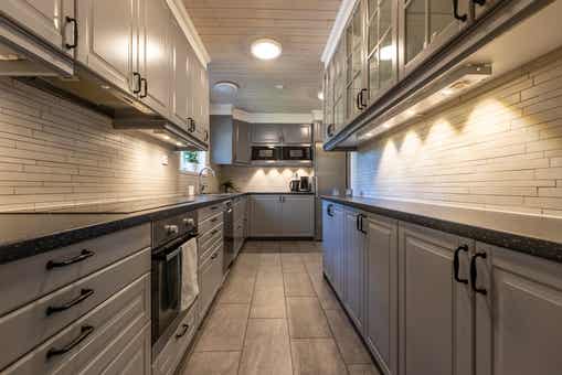 De keuken is voorzien van een elektrische kookplaat met oven, magnetron, vaatwasser, koelkast, vriezer.