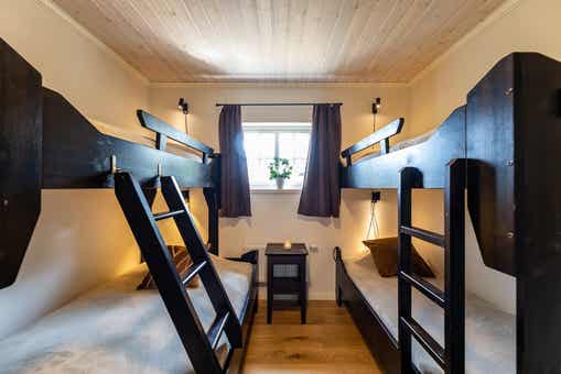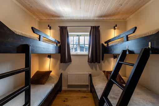 Slaapkamers:Slaapkamer-1 = 1 tweepersoonsbed. Slaapkamer-2 = 1 tweepersoonsbed. Slaapkamer-3 = 1 stapelbed, 1 stapelbed met 120 cm breed onderbed. Slaapkamer-4 = 2 eenpersoonsbedden 90 cm breed. Slaapkamer-5 = 1 stapelbed met 120 cm breed onderbed, 1 stapelbed.