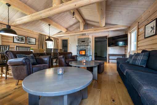 Timmerbyn Top bevindt zich in Lindvallen. apart huisje op 2 verdiepingen, 14 bedden, 162 m², woonkamer met gecombineerde keuken, 5 slaapkamers, 3 douches, 4 WC, sauna.