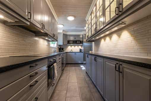 De keuken is voorzien van elektrische kookplaat met oven, koelkast, vriezer, vaatwasser, magnetron.