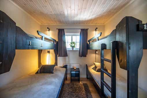 Slaapkamers:Slaapkamer-1 = 1 tweepersoonsbed 180 cm breed. Slaapkamer-2 = 1 tweepersoonsbed 180 cm breed. Slaapkamer-3 = 2 eenpersoonsbedden 90 cm breed. Slaapkamer-4 = 1 stapelbed met onderbed 120 cm breed, 1 stapelbed met onderbed 90 cm breed en bovenbed. Slaapkamer-5 = 1 stapelbed met onderbed 120 cm breed, 1 stapelbed met onderbed 90 cm breed en bovenbed.