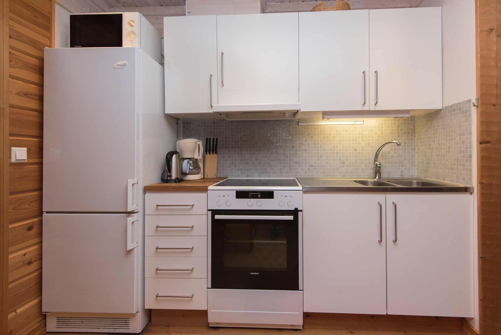 De keuken is voorzien van fornuis met oven, koelkast, vriezer, magnetron.