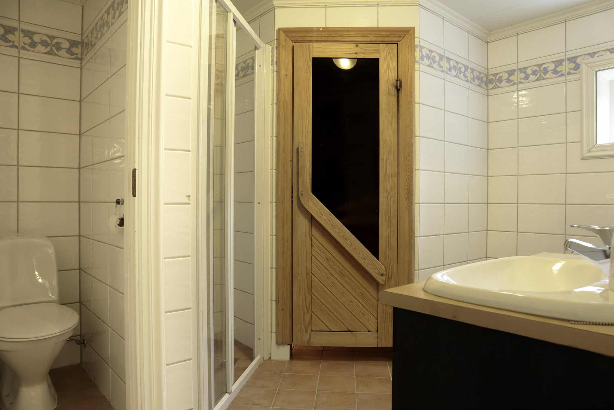 Badkamers:Badkamer 1: sauna, douche, toilet. Badkamer 2: toilet, douche.
