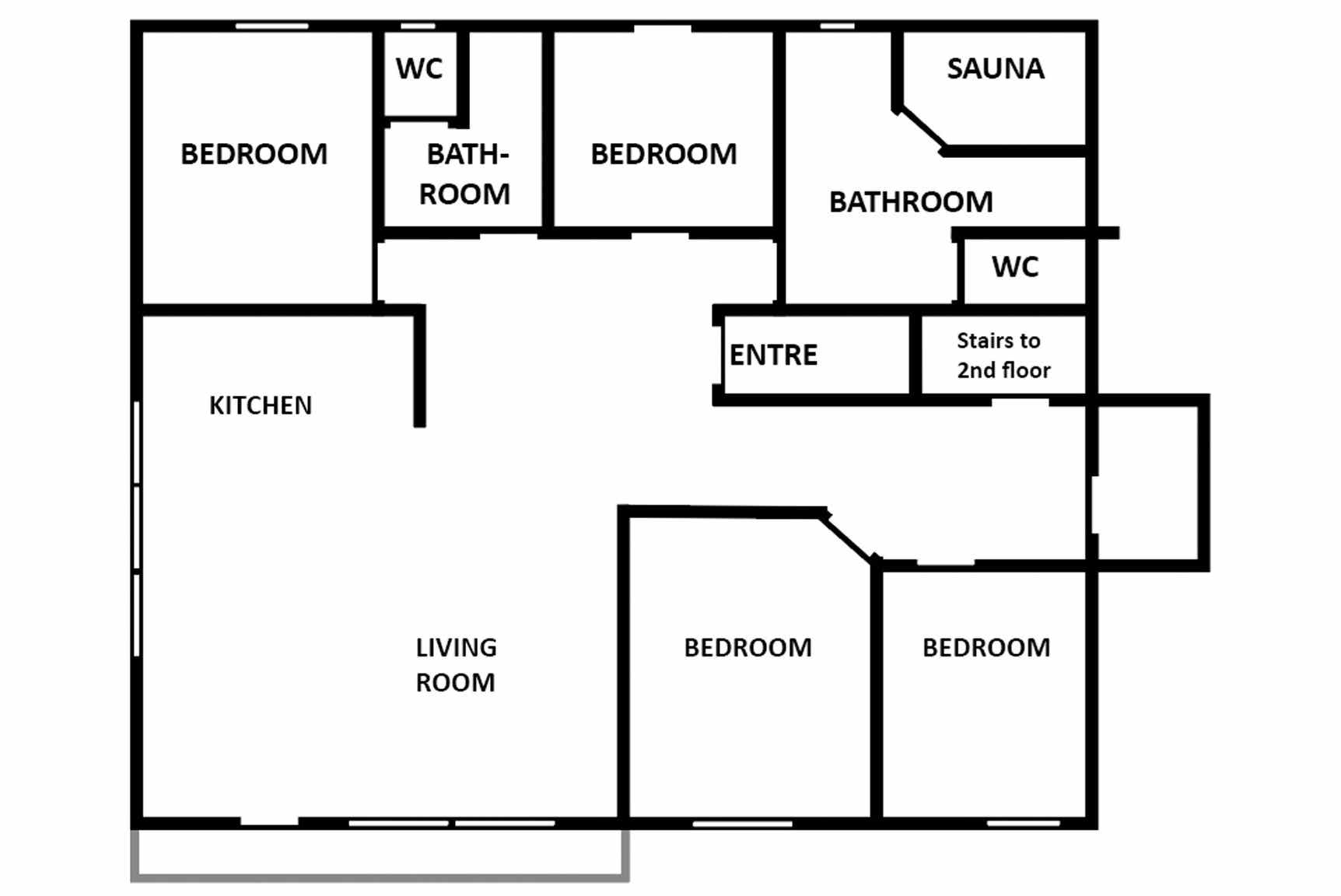 Badkamers:Badkamer 1: sauna, douche, toilet. Badkamer 2: douche, toilet. Badkamer 3: toilet, douche.