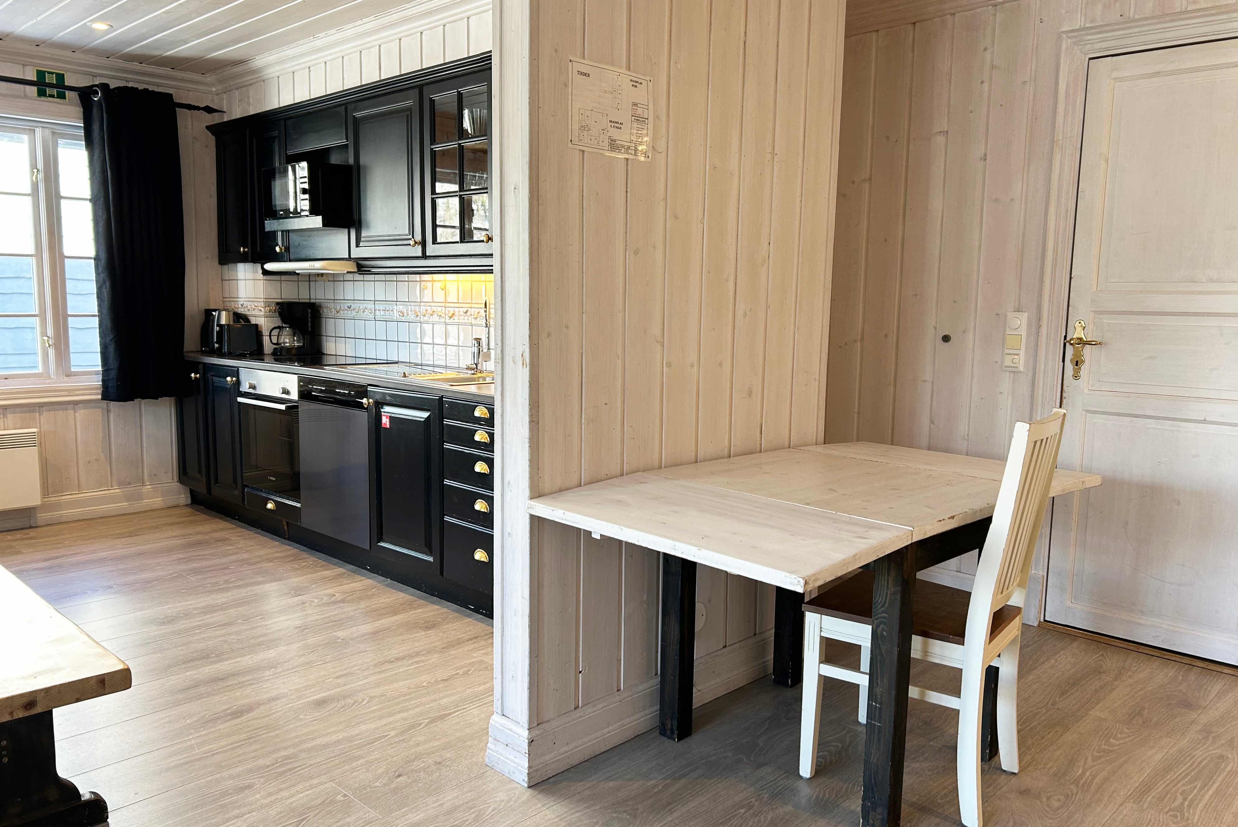 Tinden appartement is gelegen in Hemsedal Skisenter. Appartement op verdieping 3, 18 bedden, 160 m², woonkamer met gecombineerde keuken, 6 slaapkamers, 3 douches, 3 toiletten, 1 sauna.