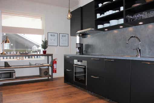 De keuken is voorzien van elektrische kookplaat, inbouwoven, koelkast, vriezer, vaatwasser, magnetron.