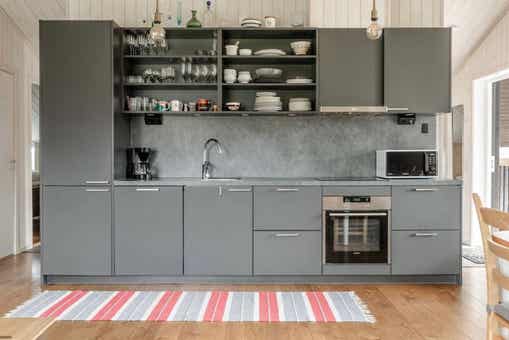 De keuken is voorzien van fornuis met oven, koelkast, vriezer, vaatwasser, magnetron.