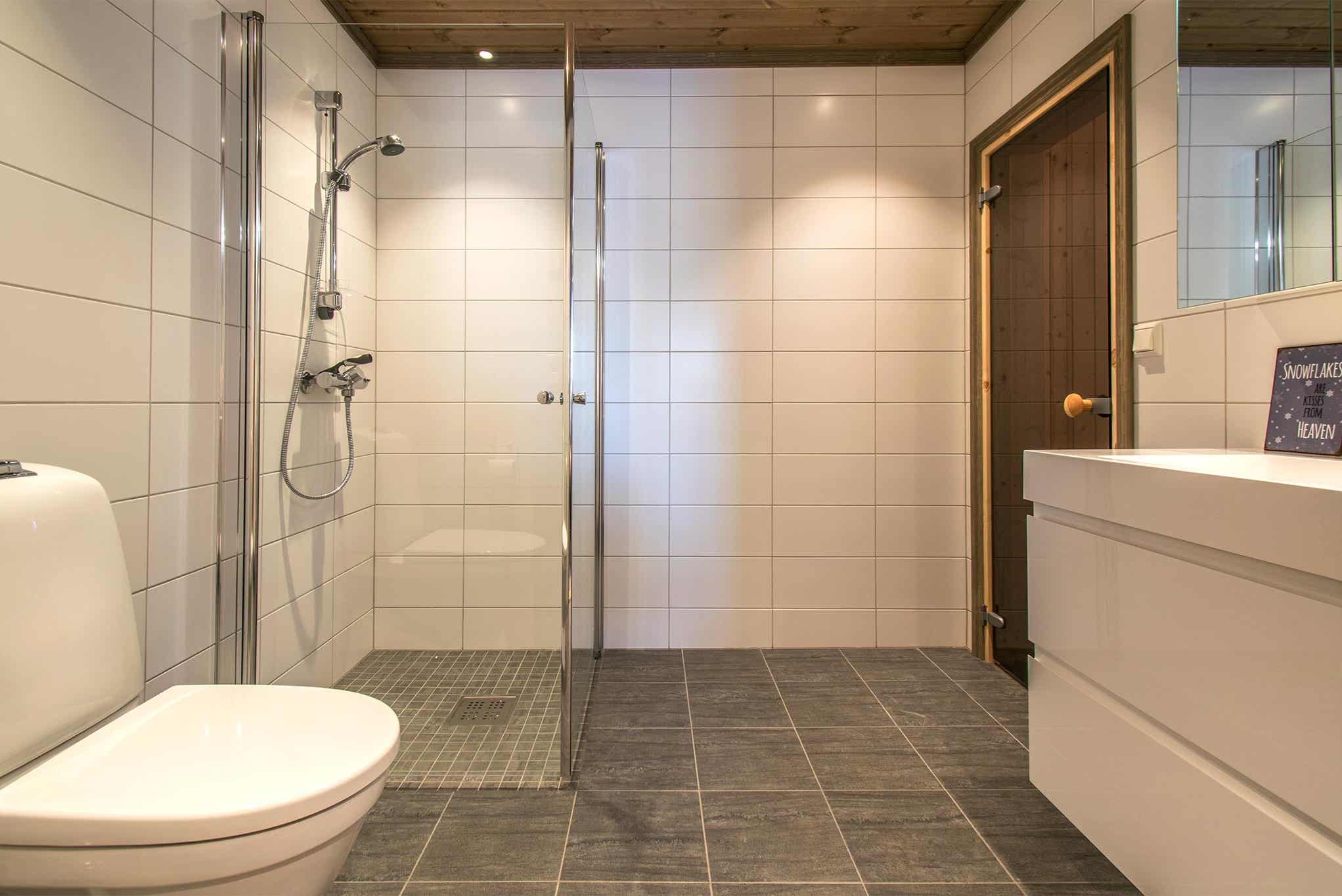 Badkamers:Badkamer 1: met douche, toilet en sauna. Badkamer 2: met douche en toilet.