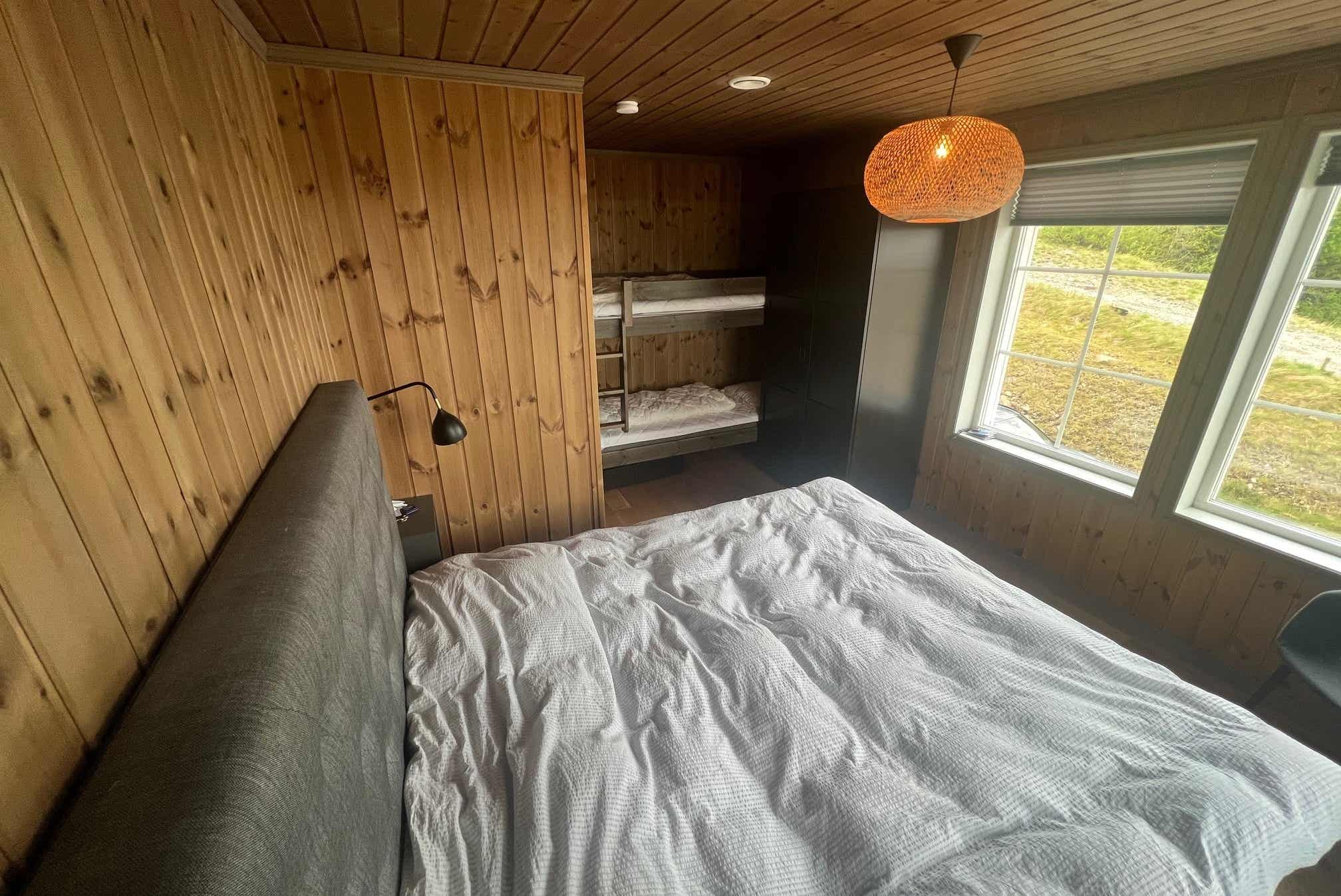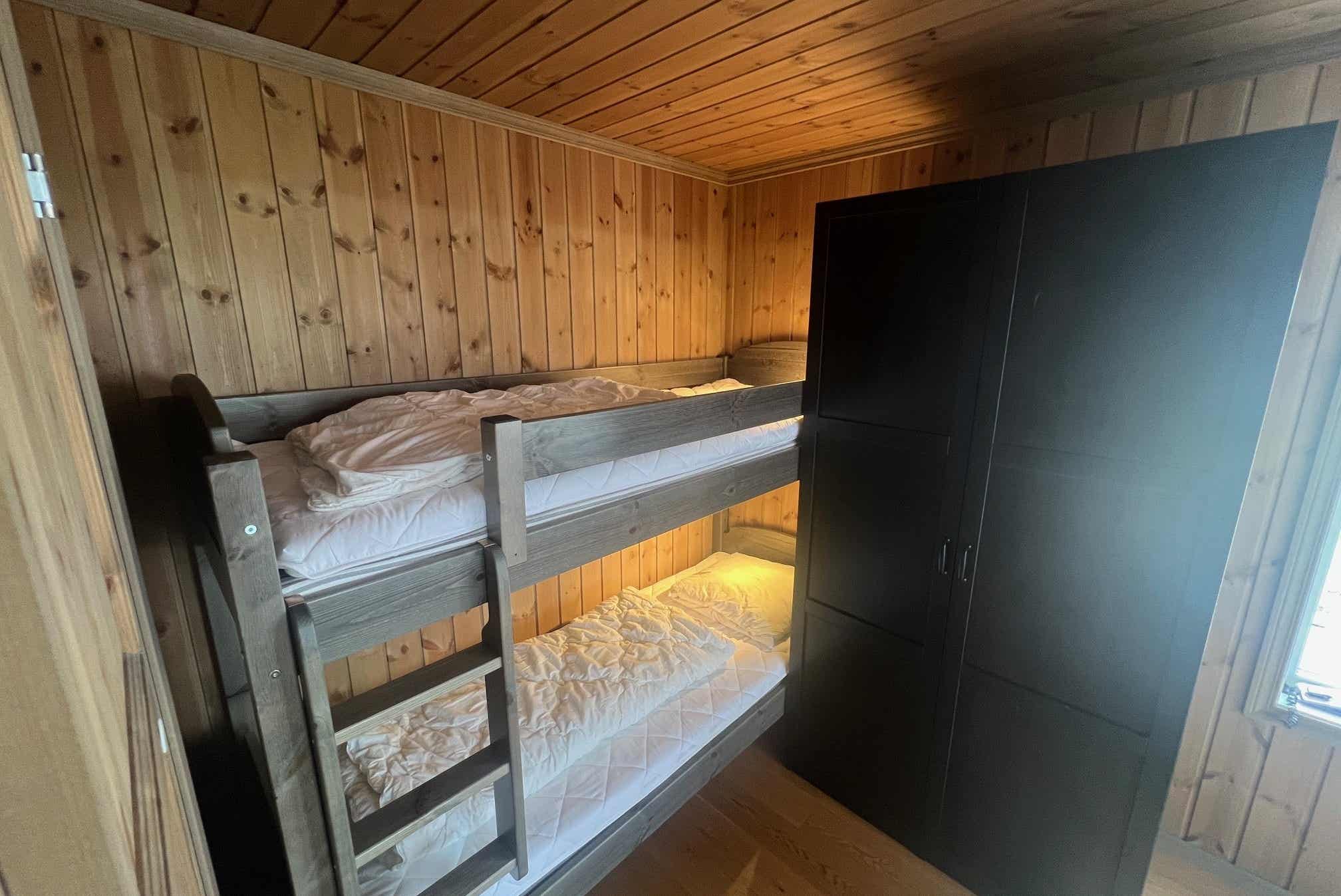 Slaapkamers:Slaapkamer 1= 1 tweepersoonsbed 180 cm breed. Slaapkamer 2= 1 tweepersoonsbed 180 cm breed, 1 stapelbed 75 cm breed. Slaapkamer 3= 1 stapelbed met 150 cm breed onderbed en 90 cm breed bovenbed. Slaapkamer 4= 1 stapelbed met 120 cm breed onderbed en 80 cm breed bovenbed.